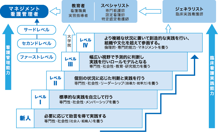 を提供できる専門職業人としての知識・技術の向上と、創造性豊かな看護職員を育成するキャリア開発の提供
